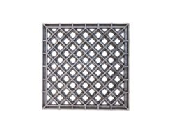 Имеет квадратную форму 278.6 х 278.6 мм, высотой 32 мм. Цвет – металлик. Отличается повышенным классом нагрузки «В», а также безболтовым креплением.